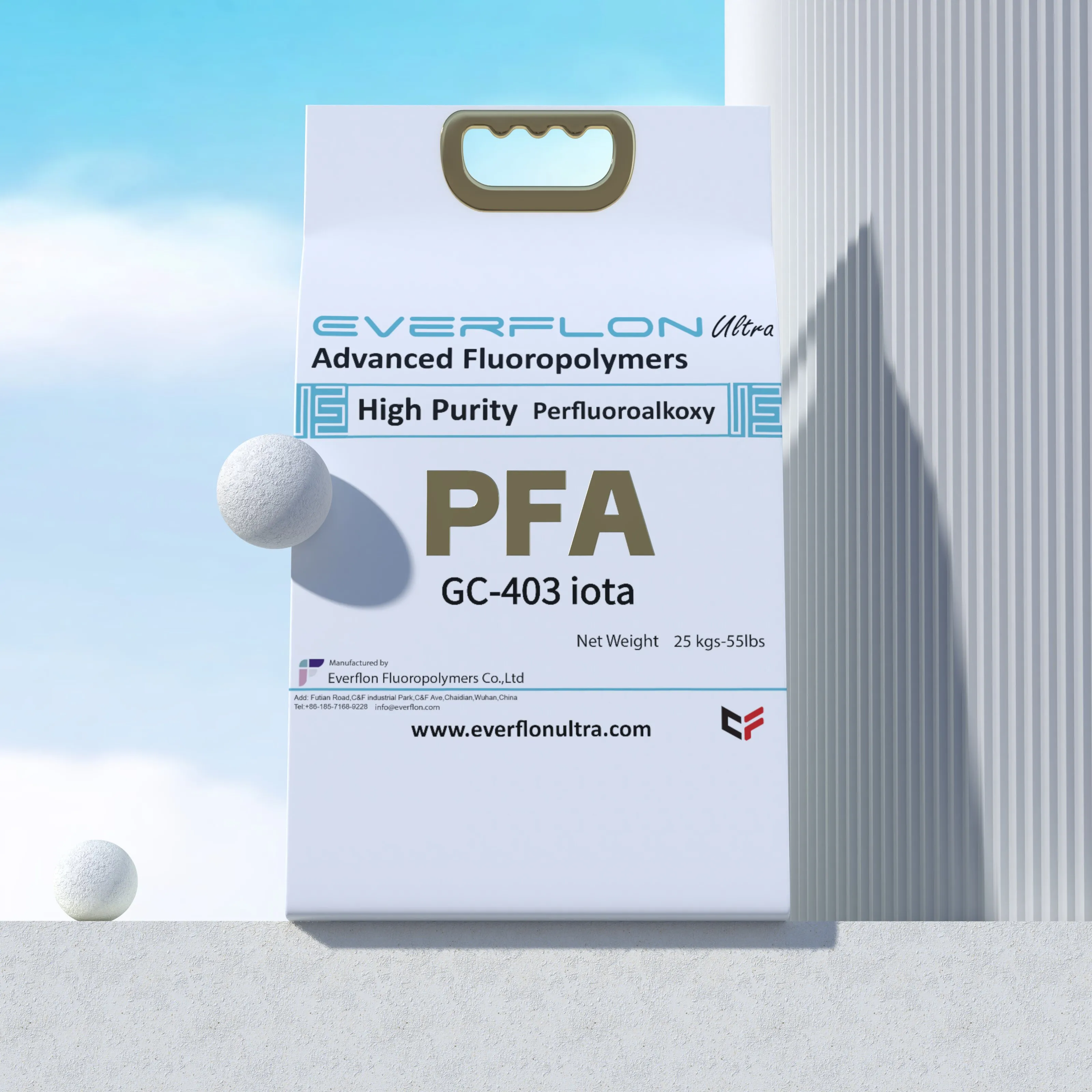 Everflon™ PFA is supplied as pellets and is available in 25-kg multilayer bags with an integral polyethylene liner.