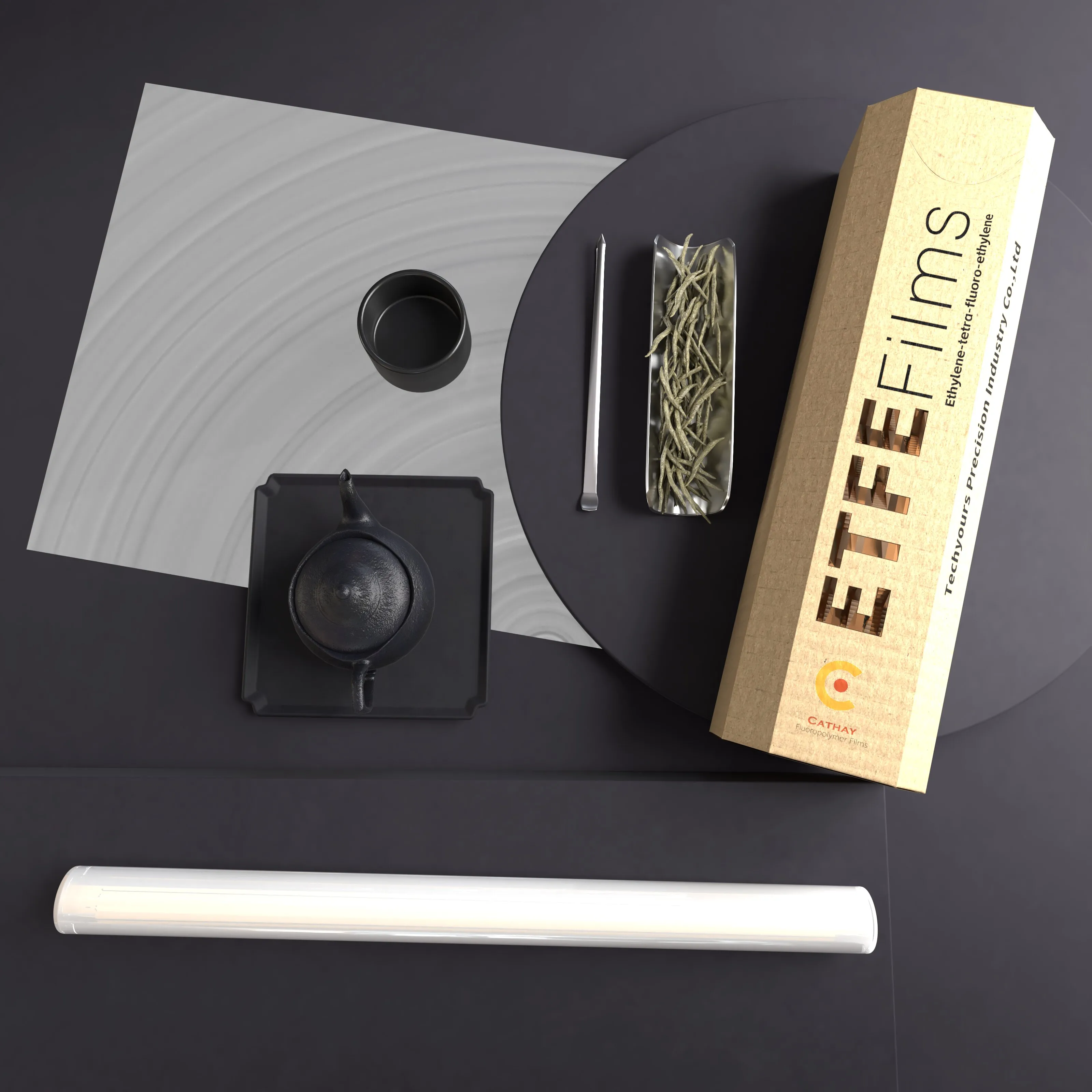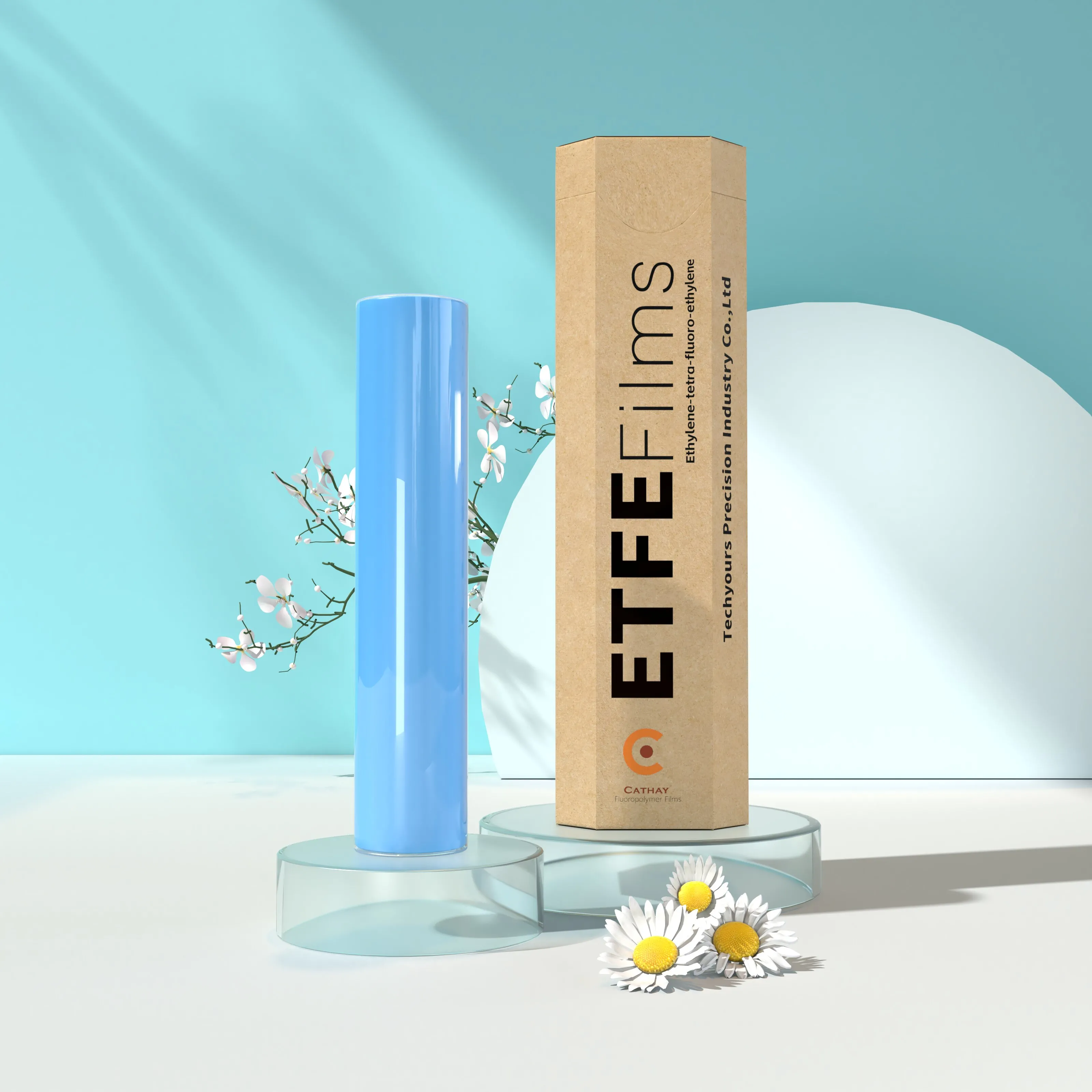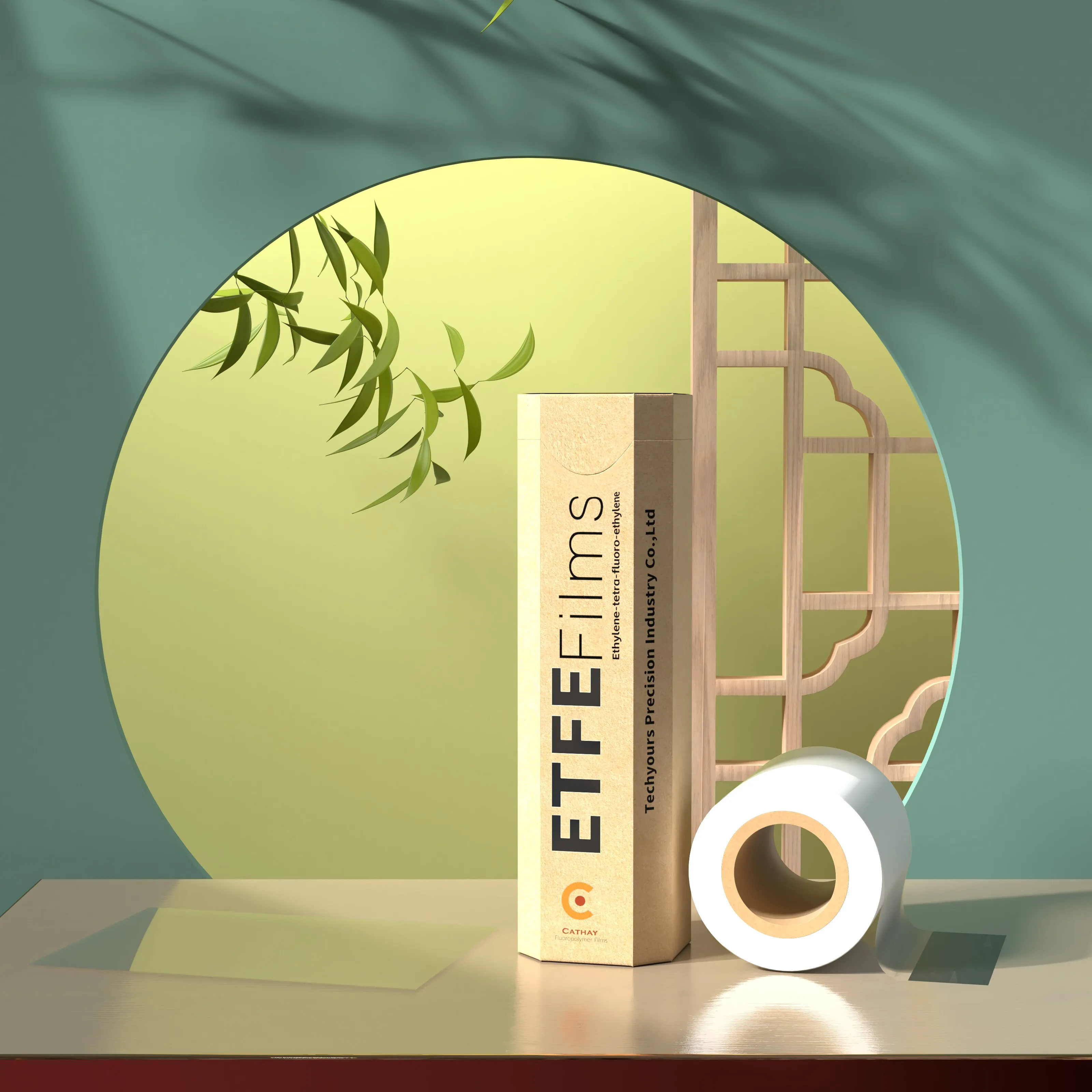 Cathay™ ETFE薄膜是一種堅韌、透明的熱塑性薄膜,具有高抗衝擊性和抗撕裂性、優異的防黏性和低摩擦性能。除熔融鹼金屬、氣態氟和某些複雜的鹵代化合物外,ETFE薄膜化學性質穩定,幾乎可耐受所有化學品的溶劑腐蝕。此外,ETFE薄膜對液體、氣體、水分和有機蒸氣的滲透性相對較低;耐戶外環境腐蝕;具有優異的介電性能和寬廣的連續使用溫度範圍。 ETFE薄膜可進行熱封、熱成型、真空成型、熱黏合、焊接、金屬化、層壓(可與其他數十種材料複合)等加工,並可作為優良的熱熔膠。